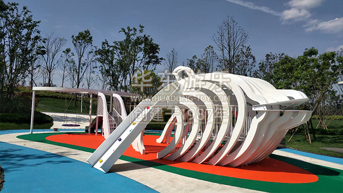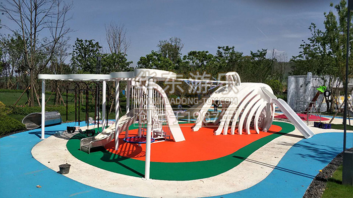 ky开元游乐贵州贵阳龙里案例是一个以鲸鱼为主题的综合性项目,内置了脚踏喷泉,不锈钢滑梯、秋千、钻洞等游乐设备。