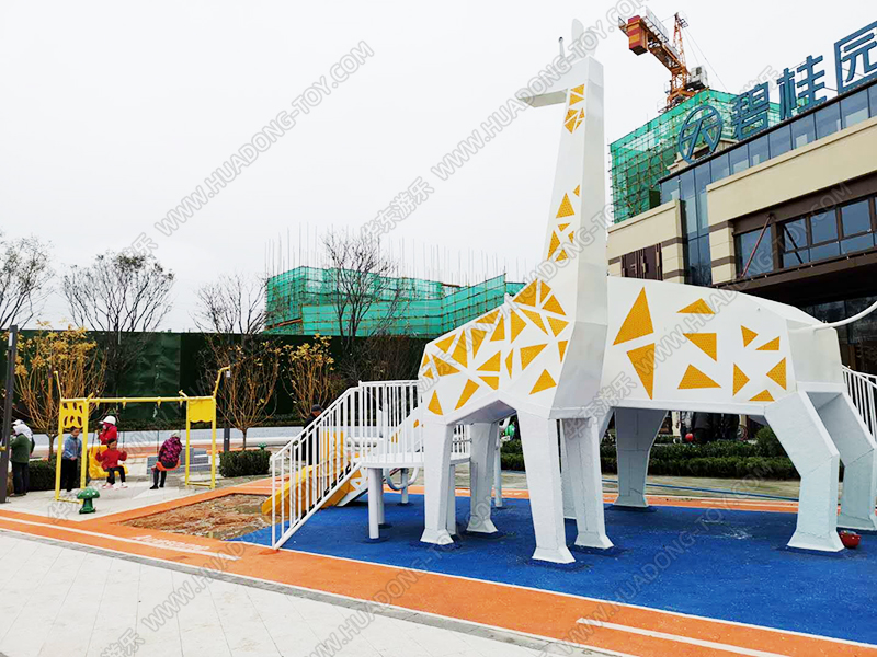 碧桂园天宸房地产项目是一个生活小区的休闲娱乐项目,该项目具有很好的主题性,采用以长颈鹿为主题,生动形象,具有很高的趣味性,观赏性,深受小朋友们的喜爱,项目中增加了ky开元游乐生产设计的秋千组合,为生活区的人们提供了很好的休闲场地和设施。