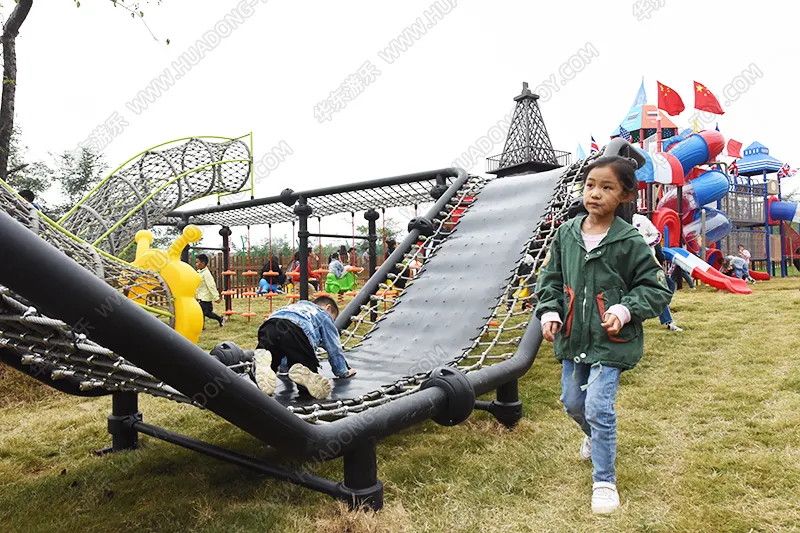 跨国梦想欢乐岛是ky开元游乐自主研发的一款大型滑梯组合,是集合了攀、爬、钻、滑等多种功能,设置了爬网、钻洞、滑梯、攀爬墙、平衡桥等游乐设备,小朋友可以在欢乐岛上面像小松鼠一样自由的玩耍,尽情的游戏。