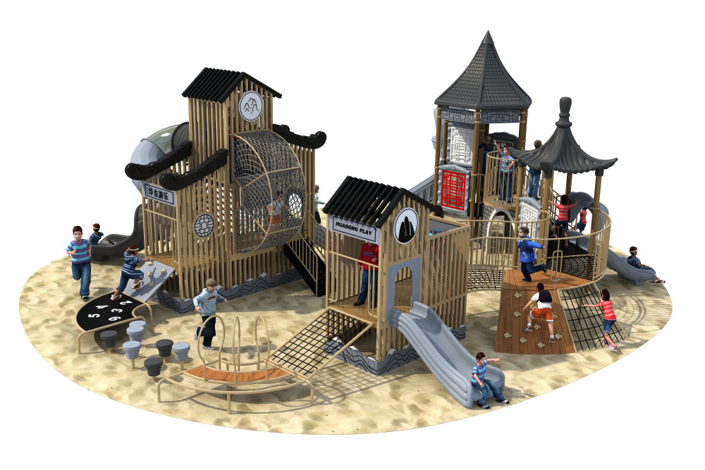 • 中国风系列是一种具有中国风建筑特色的大型滑梯组合,以苏州园林与徽派建筑为灵感,将凉亭、房屋、大红灯笼融入现代游乐设备,体现建筑美学的简洁、复古、大方,为孩子打造一个奇妙的游乐世界,积极培养孩子对中国传统文化的热爱,弘扬中国传统与亲身体验。