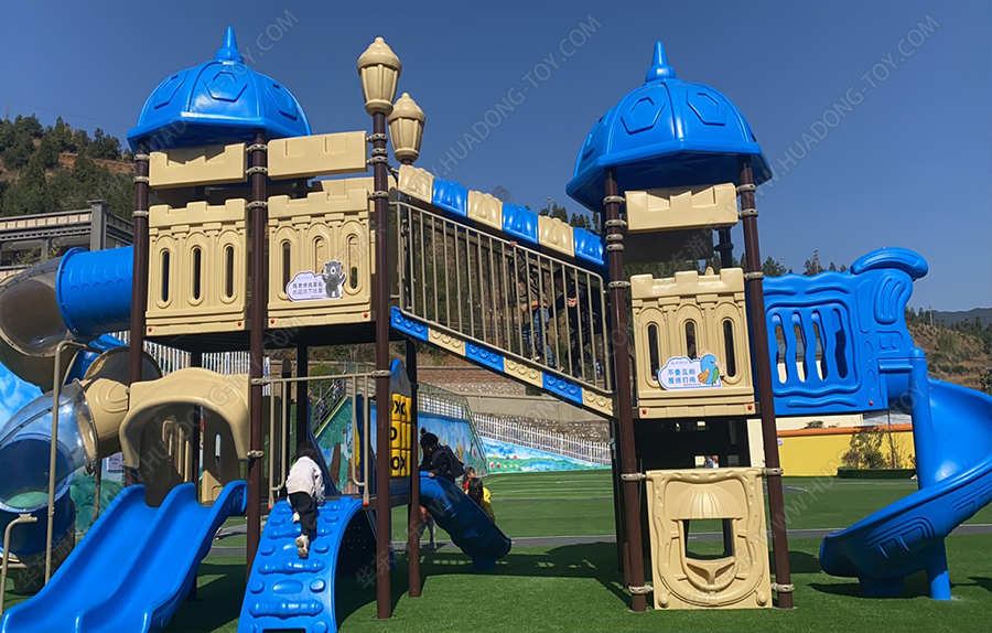 云南省曲靖市麒麟区富源县后所镇庆云幼儿园选用的是ky开元游乐生产的欧韩城堡系列的户外滑梯,该滑梯有旋转滑梯、攀爬墙、直行滑梯、走梯、S滑桶等功能,能够幼儿园的日常教学和小朋友的玩耍,同时ky开元游乐生产的游乐设备具有颜色鲜艳、经久耐用、品质优越等特点,深受广大消费者的喜爱。