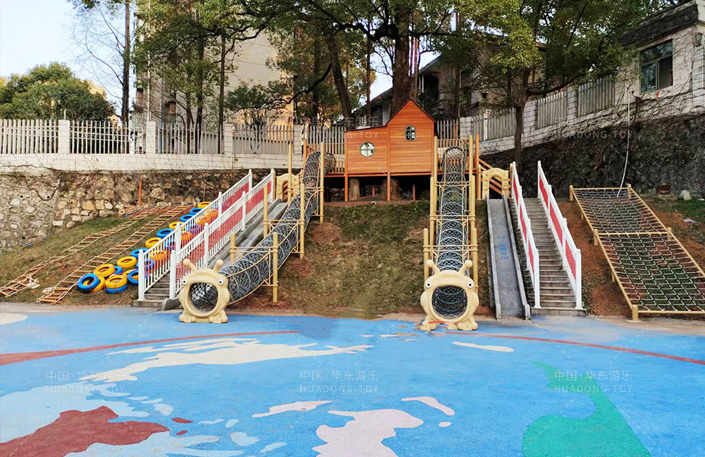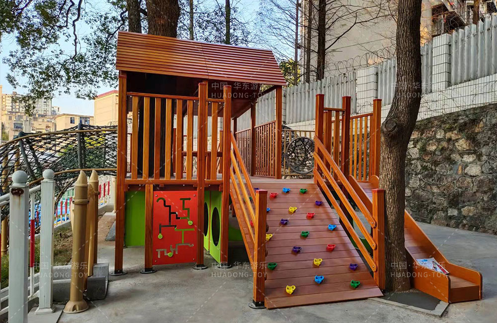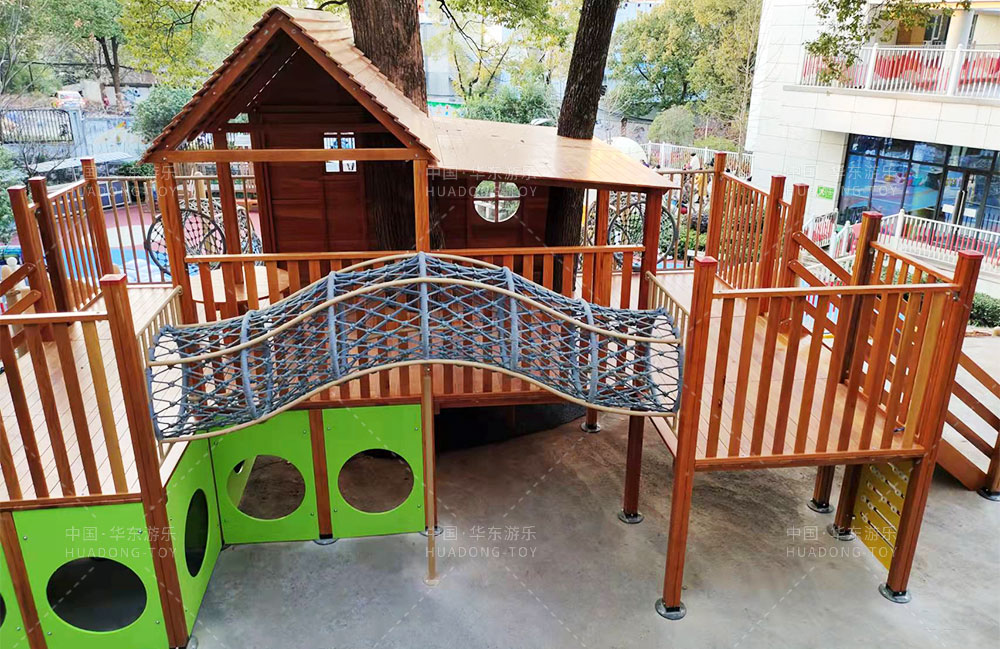 湖南省株洲市株机幼儿园是一家专业的学前教育培训机构,此次项目采用的是ky开元游乐自主研发的木制非标游乐项目,整个项目设置的有木制游戏小屋,攀爬墙、攀网钻洞、轮胎攀爬等游乐设备。