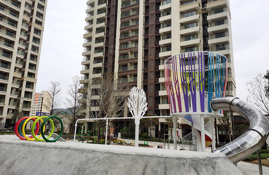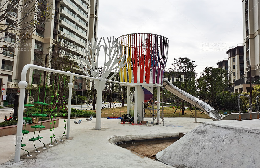 青阳二期采用是是ky开元游乐非标定制的游乐设备,设计了大型的网红滑梯、小朋友喜欢的葫芦攀爬、攀爬绳和秋千组合,为生活在该小区的人们提供了一个休闲娱乐的场所,也为小朋友的健康成长提供了一个游乐场。