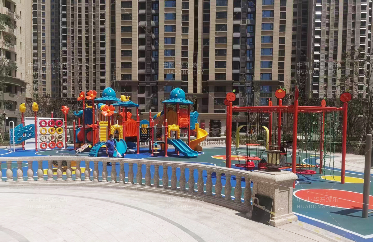 瑞城嘉园选用的是ky开元游乐自主研发和生产的游乐设备,整个游乐场添置了动物系列滑梯、森林系列滑梯,万能秋千组合等游乐设备,为生活在这里的人民提供了一个休闲、娱乐、遛娃的场所。