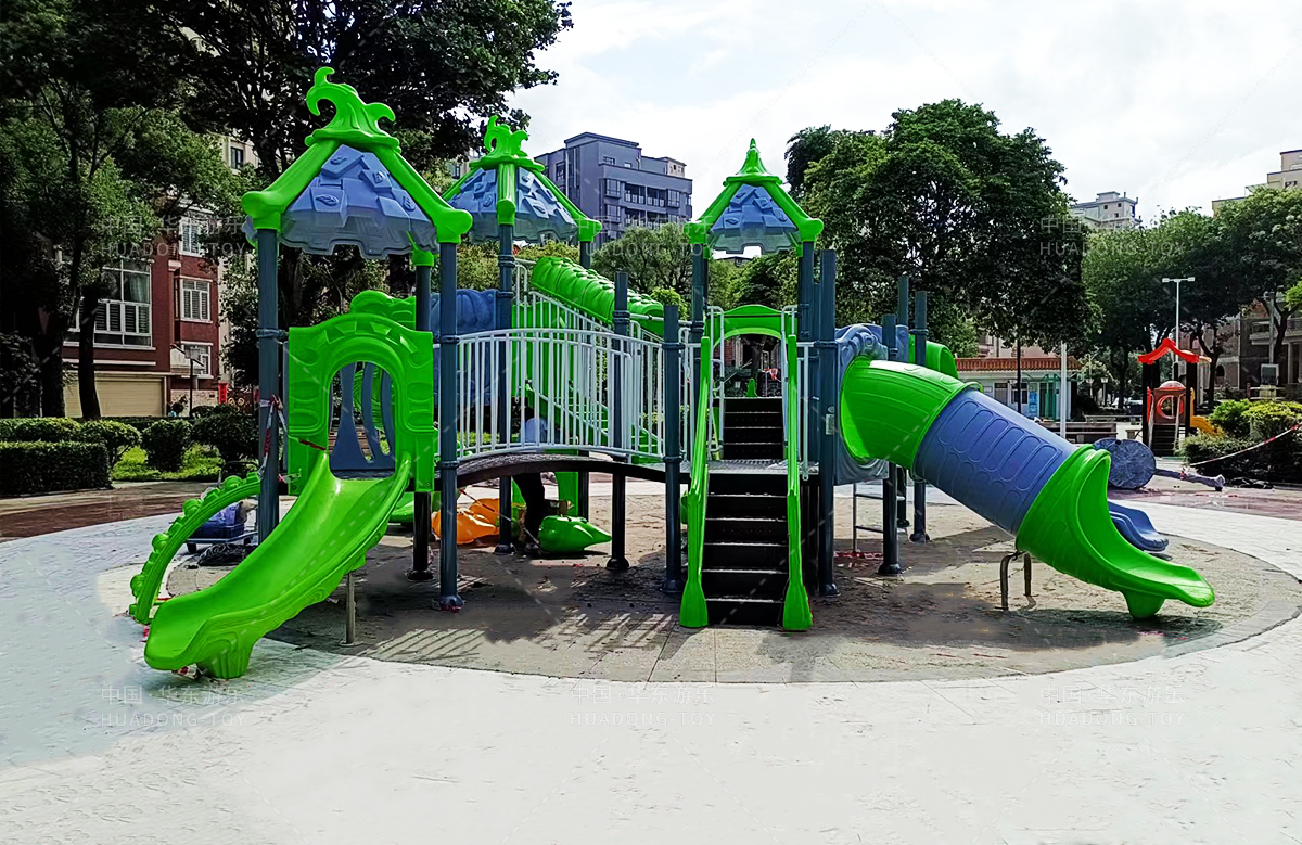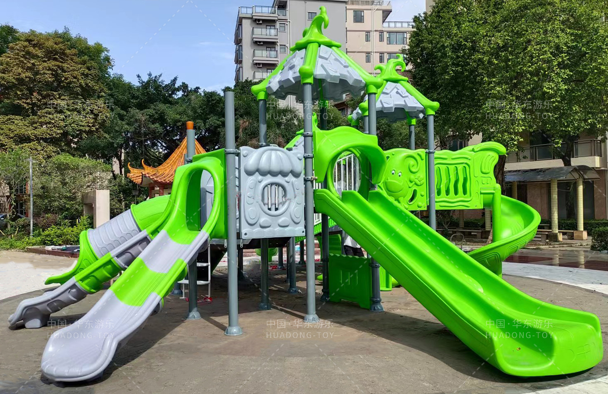 该小区选用的是ky开元游乐自主研发和设计的具有攀爬、钻洞、滑梯为一体的魔法屋系列组合滑梯和动物园系列滑梯,让生活在该小区的人有一个休闲娱乐的场所。