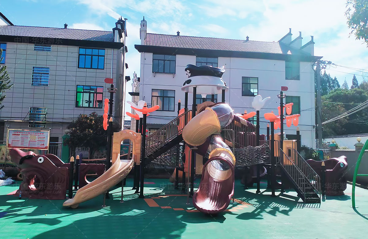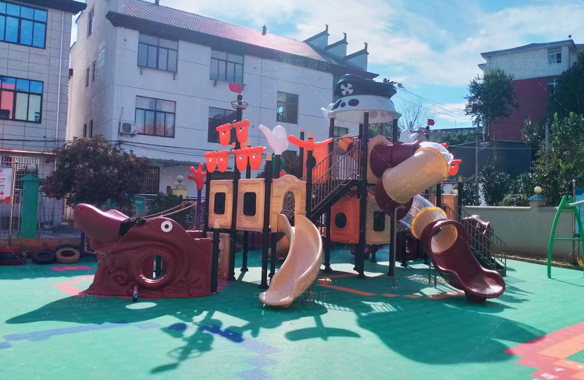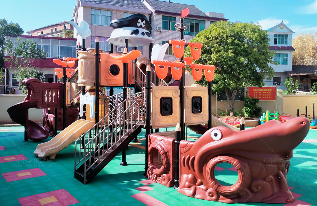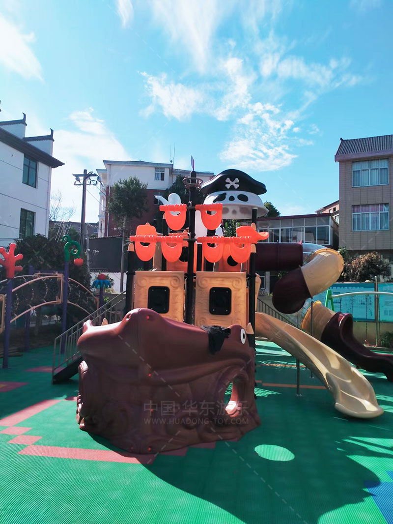 江西省上饶市玉山县四股桥中心幼儿园是一个专业的学前教育机构,为了更好的让孩子们有一个学习、娱乐的场所,该项目选用的是ky开元游乐自主研发和生产的海盗船系列组合滑梯,该滑梯具有主题性强,功能齐全、玩法多样、使用寿命长等特点,深受小朋友们的喜爱。