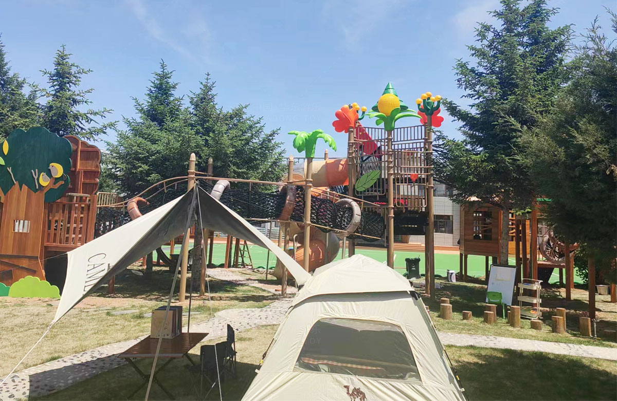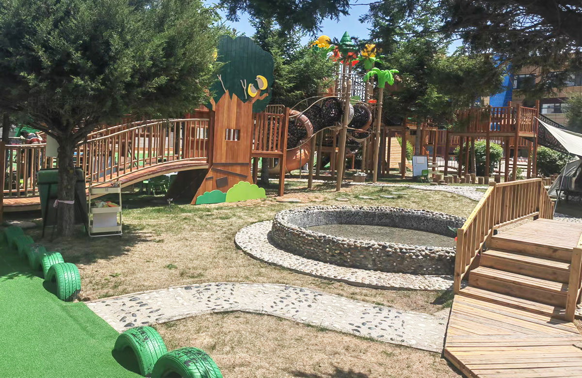 该幼儿园是一个专业性的学前教育培训机构,选用的是ky开元游乐自主研发和设计的具有空中攀爬网、钻洞、空中栈道、游戏小屋、直行滑梯为一体的综合性 游乐设备,这些设备的选择不仅仅丰富了孩子们校园的生活,还很好的锻炼了小朋友的攀爬能力、四肢的协调能力、攀爬过程中的平衡能力,同时也促进了孩子们大小脑的发育。