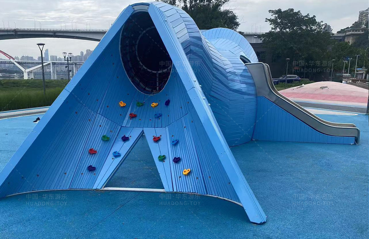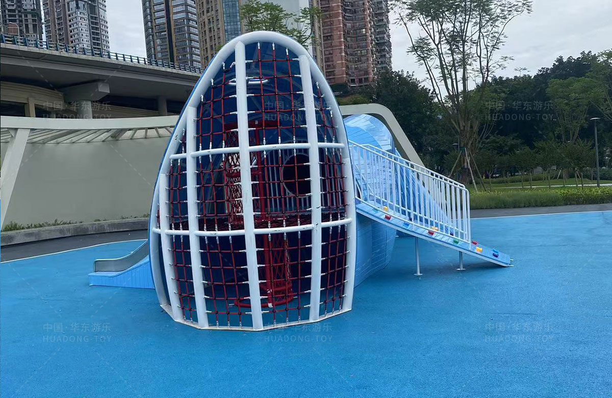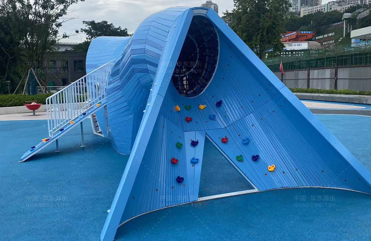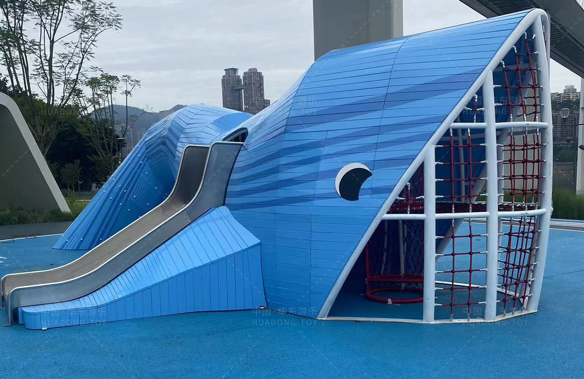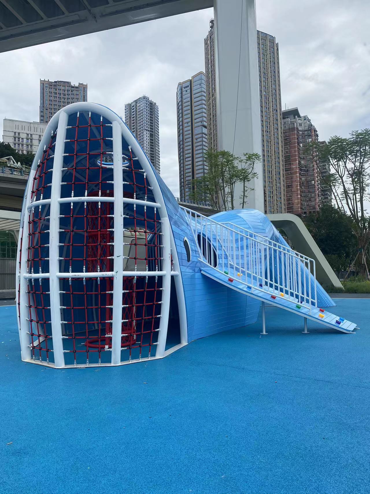 重庆市珊瑚公园是一个公益性的,专门为该区域游玩的人群提供休闲、娱乐的场所,此次选用的游乐设备是ky开元游乐自助研发和设计的以大鲨鱼为主的非标定制设备,具备了攀爬网、攀爬墙、钻洞、不锈钢滑梯等功能。