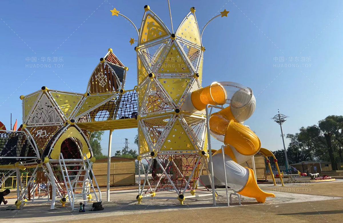 崔家沟体育广场体育广场选用的是ky开元游乐自主研发和设计的非标定制系列游乐设备,分别设置了攀爬网、钻洞、不锈钢滑梯、儿童摇摇乐、儿童秋千、木质拓展等游乐设备,很大程度上丰富了孩子们的娱乐生活,也为整个场地提供了生机与活力。