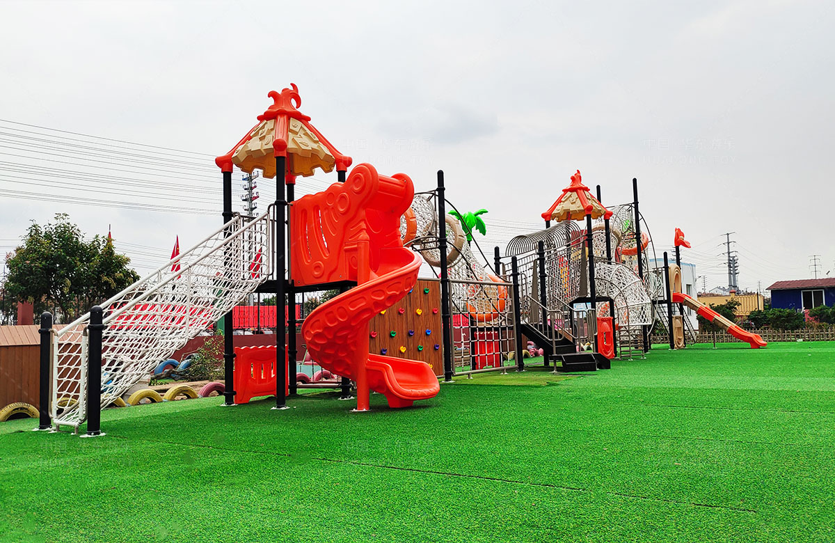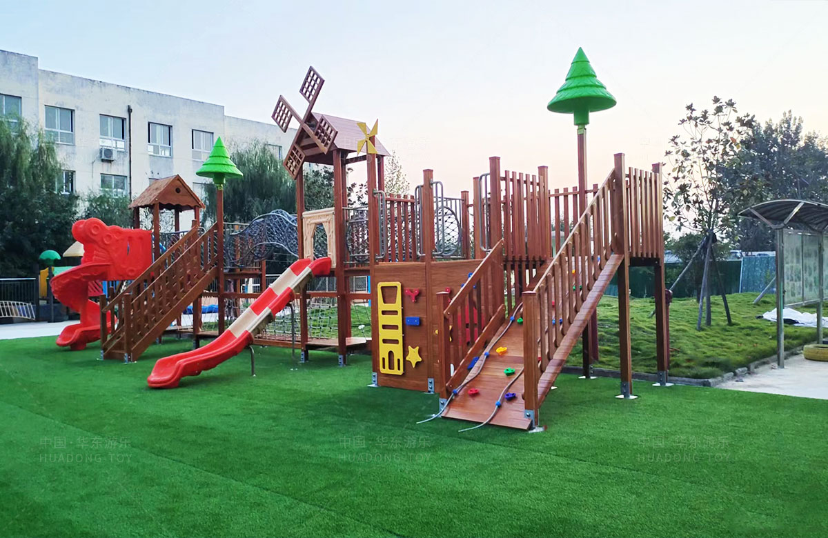 团林镇中心幼儿园是一所专业性的学期教育学校,此处选用的是ky开元游乐自主研发和设计的魔法屋系列组合滑梯和木制拓展游乐设备,具备了攀爬、钻洞、滑梯、攀爬网、攀爬梯等功能为一体,不仅仅为小朋友提供了一个很好的游乐环境,也为老师的教学提供了帮助。