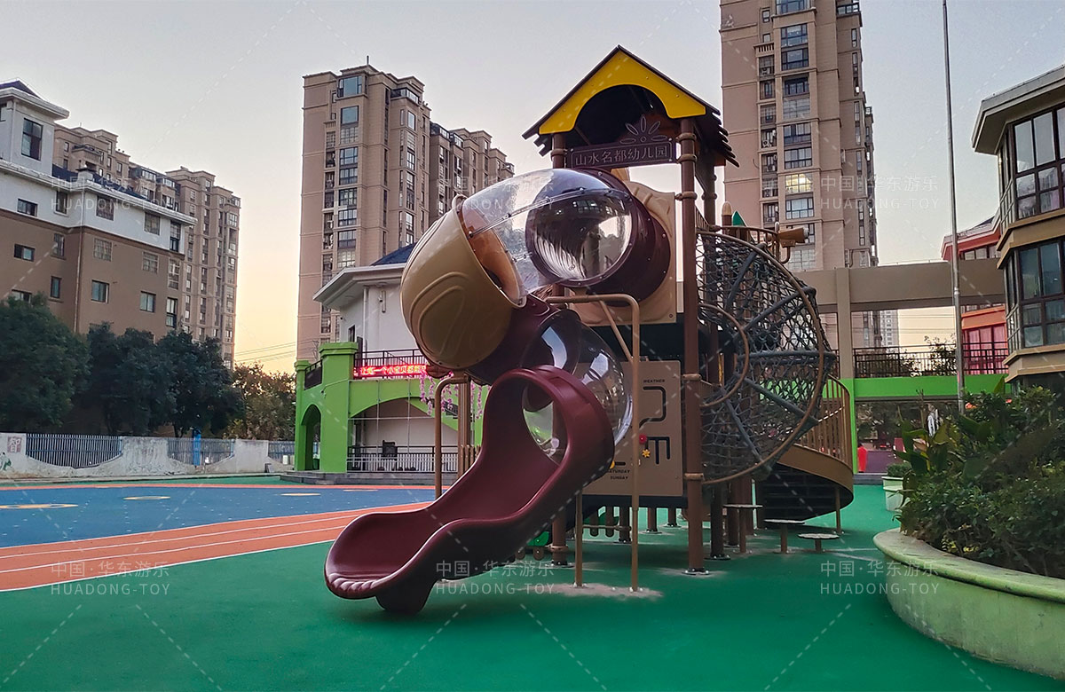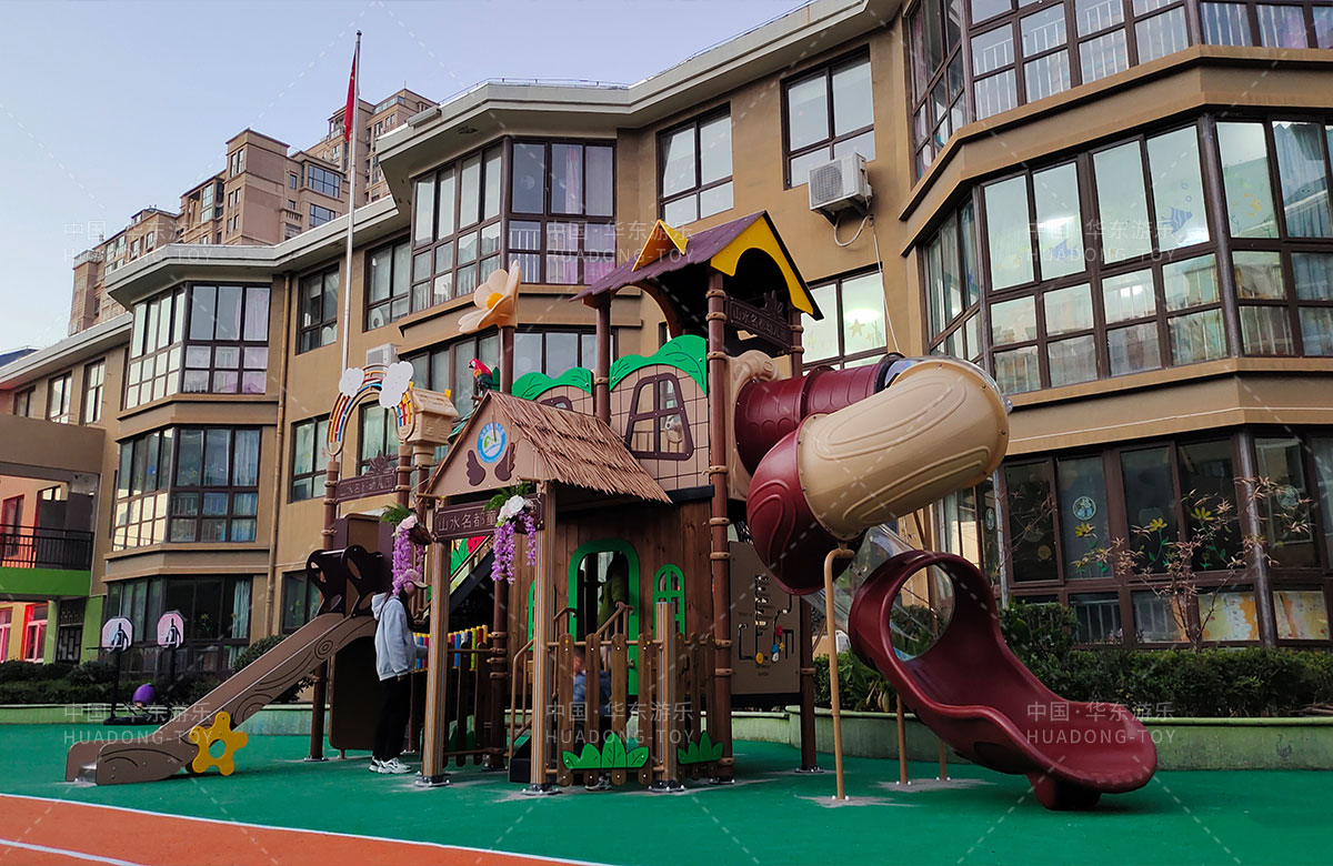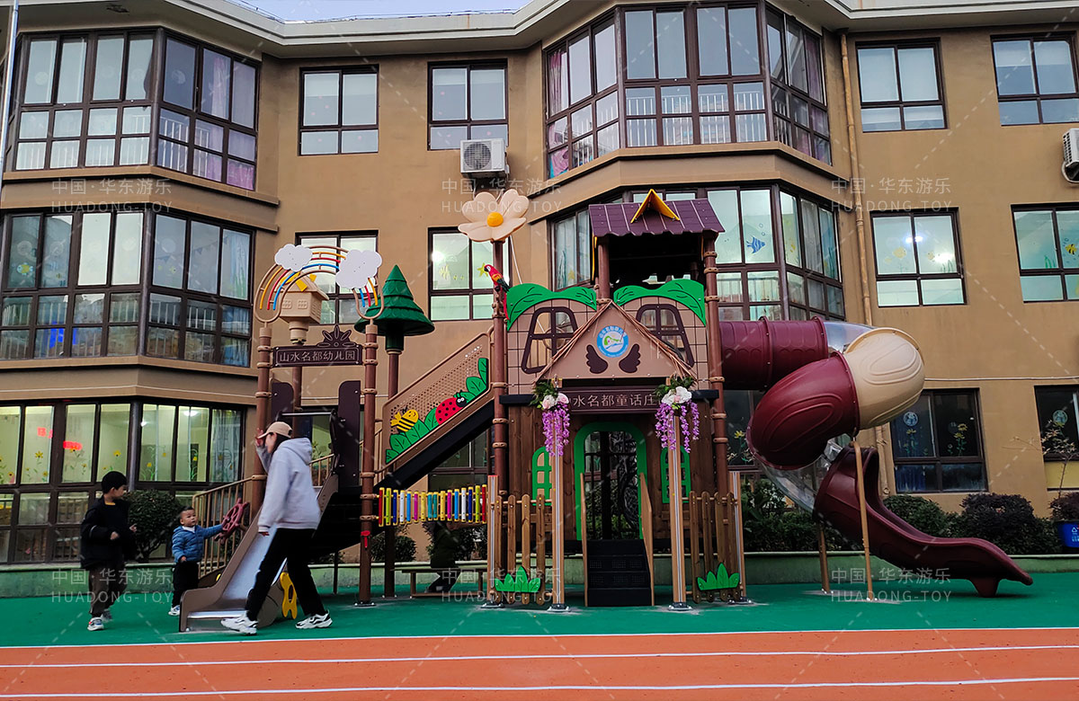 江苏省淮安市山水名都幼儿园是一家专业的学期教育培训机构,此次选用的是ky开元游乐自主研发和设计的通话庄园系列组合滑梯,该设备具备了攀爬网、攀爬墙、打击乐器、旋转滑梯等功能,是一款功能齐全、主题鲜明、颜色艳丽、品质优越的综合性游乐设备,非常适合幼儿园。