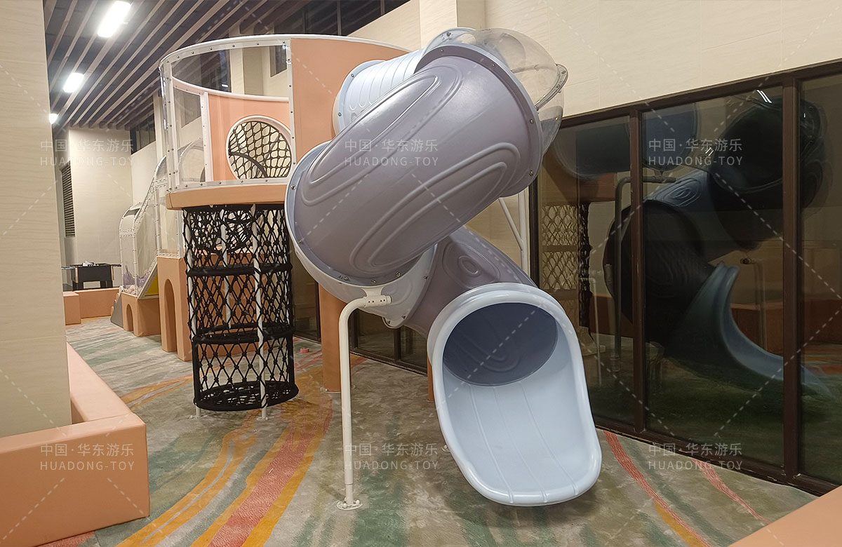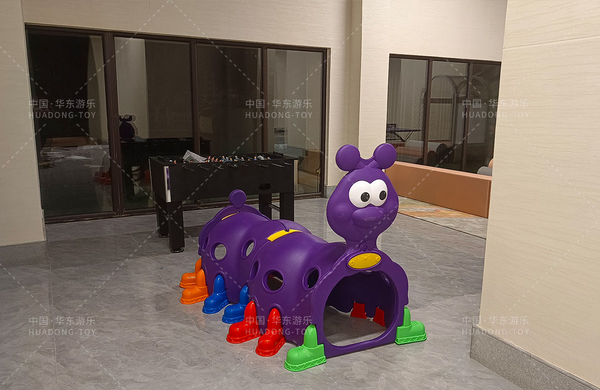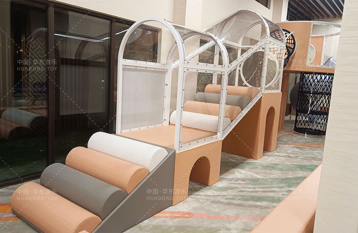 该项目选用的是ky开元游乐生产的室内淘气堡系列产品,整套设备集合了攀爬网、钻洞、攀爬梯、旋转滑筒等功能,除此之外还设置了小朋友们喜欢的毛毛虫钻洞,儿童台球、乒乓球、桌面足球等设备,让整个售楼处变得更加的充满生机与活力。