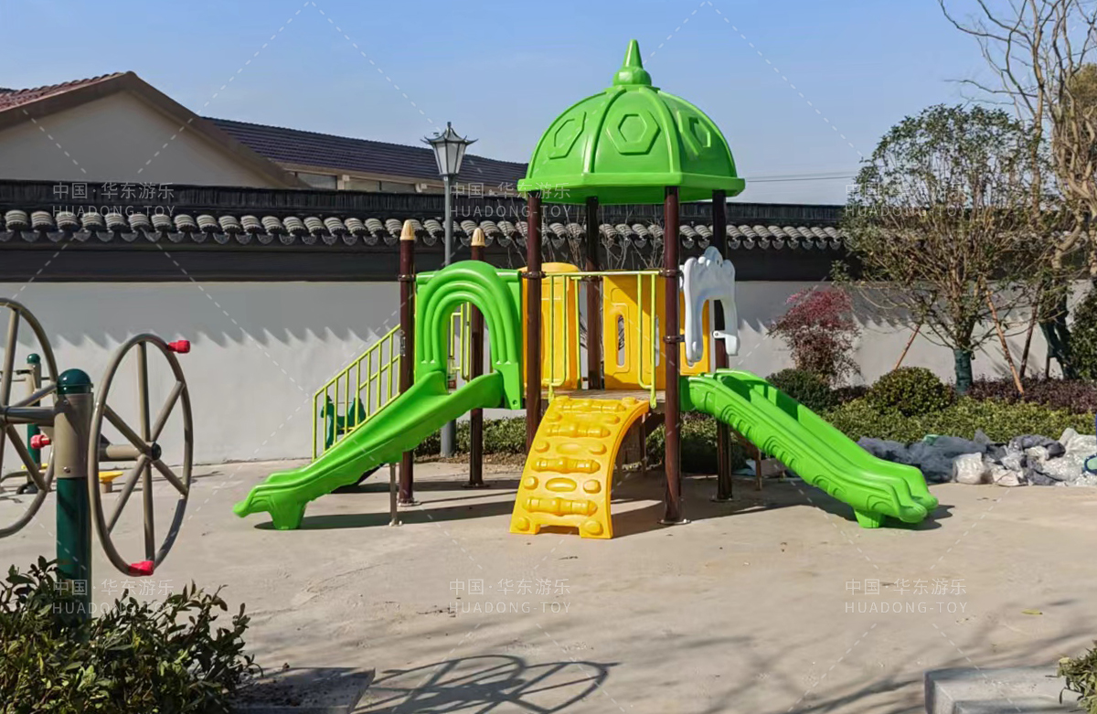 常州市桃花院子选用的是ky开元游乐自主研发和设计的别墅屋系列组合滑梯,该滑梯采用滚塑一体成型,具有颜色艳丽、使用寿命长等特点,同时为了更好的为生活在该小区的人们服务,还设置了各种类型的健身器,以及小朋友喜欢的儿童跷跷板、儿童秋千和传声筒等游乐设备,不仅丰富了小区的生活,也为小朋友的玩耍提供了一个很好的场所。
