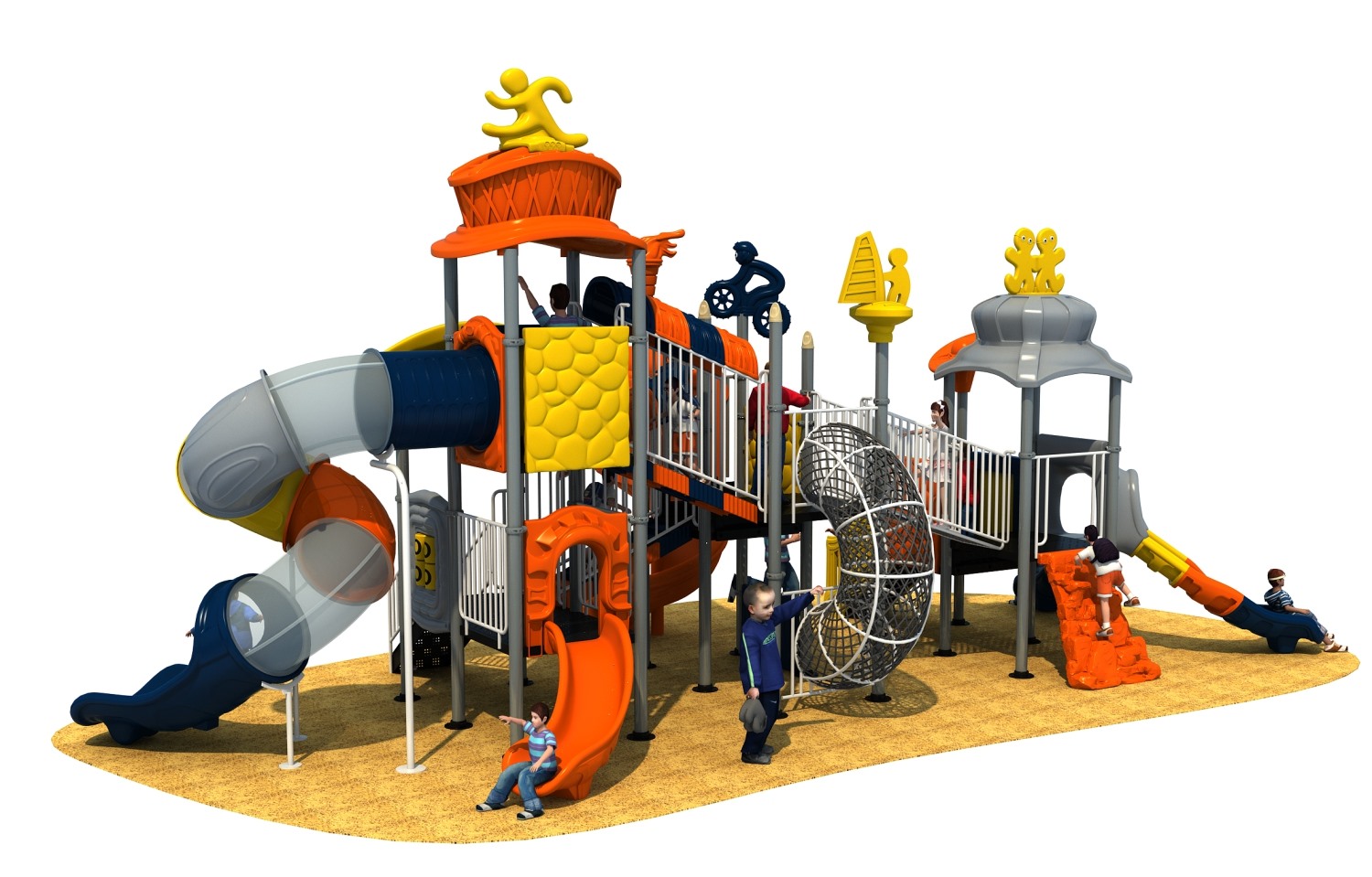 • 赛事系列游乐设备是ky开元游乐根据常见的足球、垒篮球体育等赛事而自主研发和设计的组合滑梯,它是一款能够引导孩子们在玩耍时小朋友之间应该互相帮助、相互鼓励的无动力游乐器械,也是一个具备教导孩子们学会通过自己的努力取得最终胜利而敢于拼搏和挑战的游乐设备,卡通的造型、生动的形象让小朋友在玩耍的过程中有一个愉快的童年。