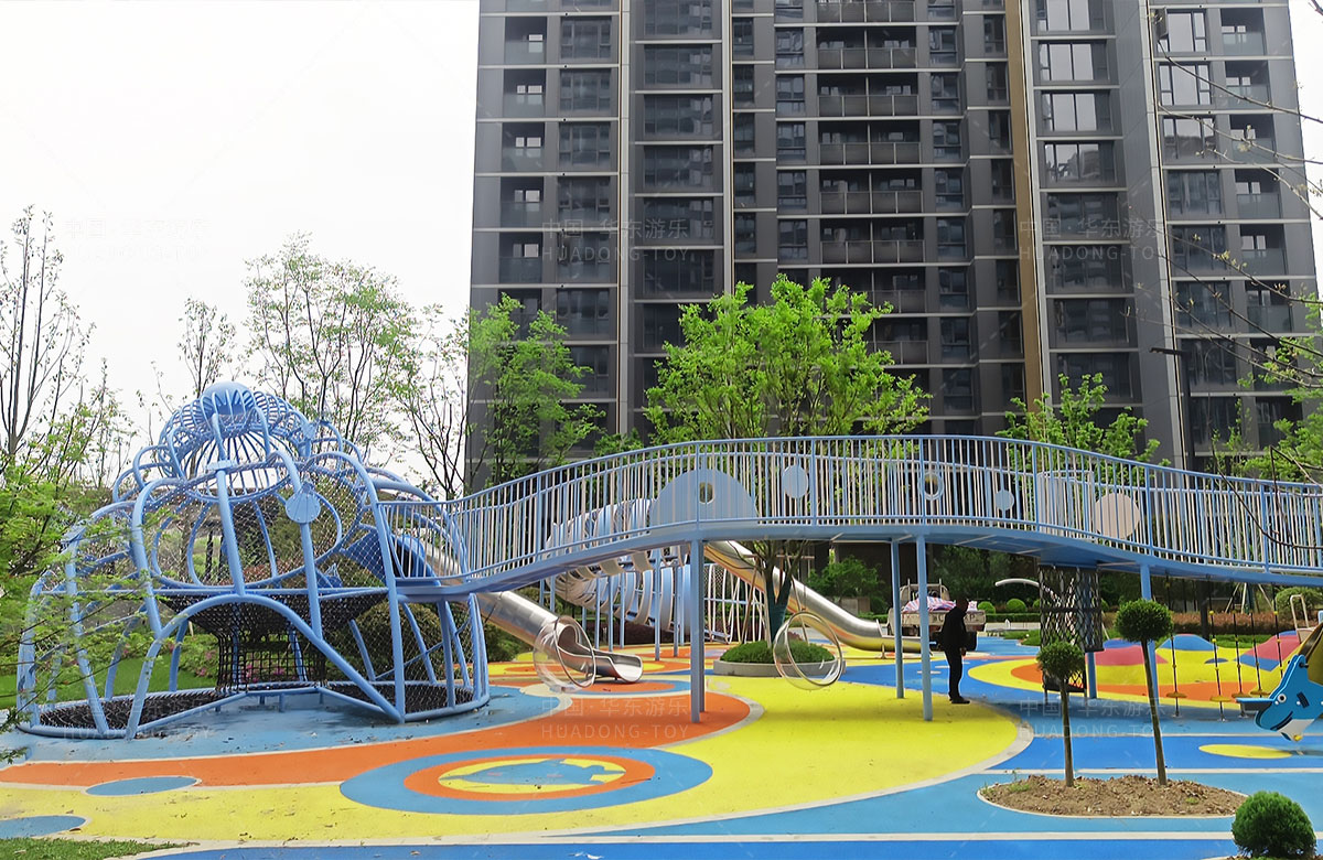 温州德信是一家高端居民小区,为了更好的提供高端的服务,该小区选用的是ky开元游乐自主研发和生产的以“田螺公主”为主题的综合性游乐园,设置了孩子们喜欢的钻洞、攀爬、秋千、摇摇乐、翻翻乐、不锈钢滑梯、攀爬网等功能的游乐设备,不仅丰富了小区的生活,也为孩子们的玩耍提供了一个很好的游乐场所。