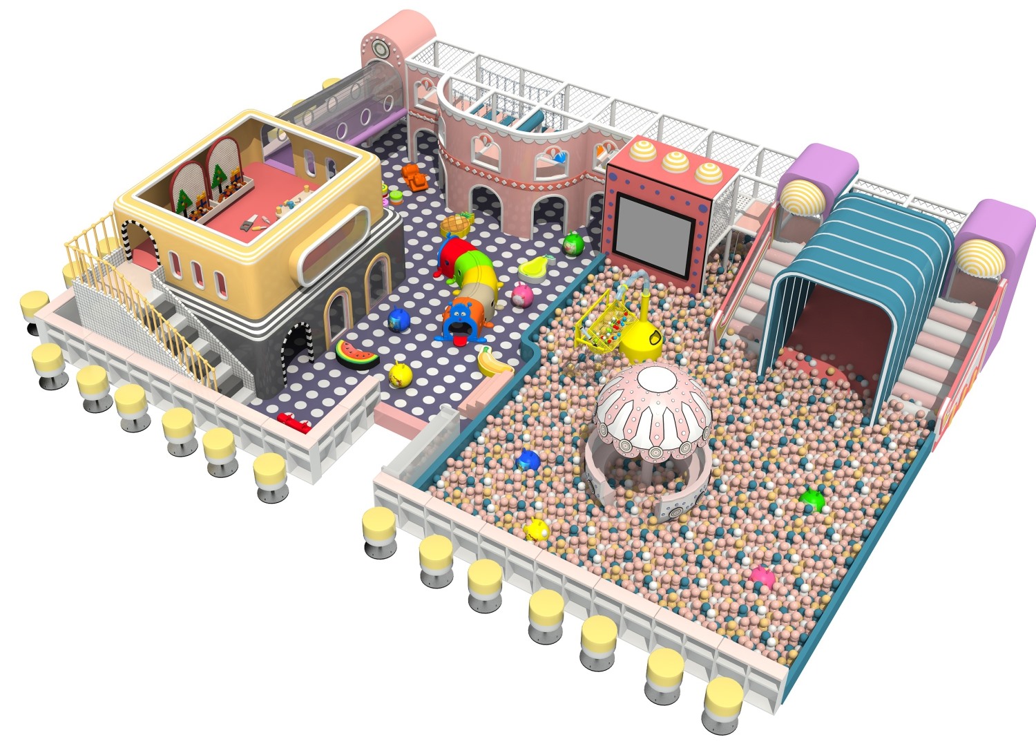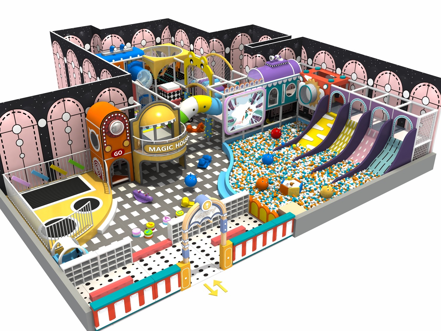 室内淘气堡又称室内儿童乐园,是针对儿童生理能力与心理特点喜欢钻、爬、滑、滚、晃、荡、跳、摇等玩耍动作而设计的综合性室内休闲娱乐场所。ky开元游乐淘气堡项目具有多样性、互动性和安全性的特点,儿童在玩乐的同时能培养独立的个性,团队协作能力,沟通能力、克服困难、积极进取的精神,锻炼身体、健脑益智。