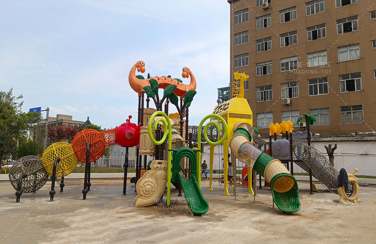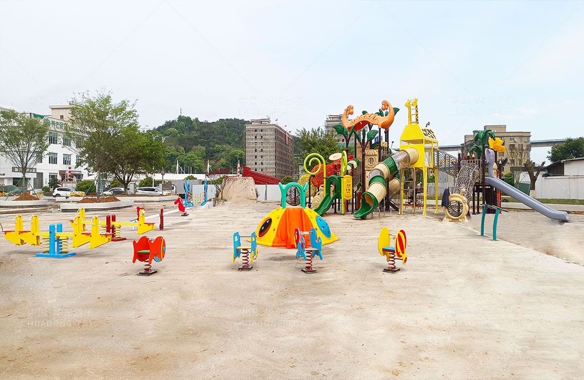 乐清市溪西工业园区休闲文化生态园是一个免费的文旅公园,主要为生活在这里的人群提供一个休闲、娱乐、遛娃、健身的场所,在该项目中选用的的ky开元有了自主研发和生产的动物系列组合滑梯,该滑梯具有功能齐全、玩法多样、颜色艳丽等特点,除此之外还新增了儿童 摇摇乐、组合秋千、跷跷板、打击乐器、脚踏旋转座椅等游乐设备。