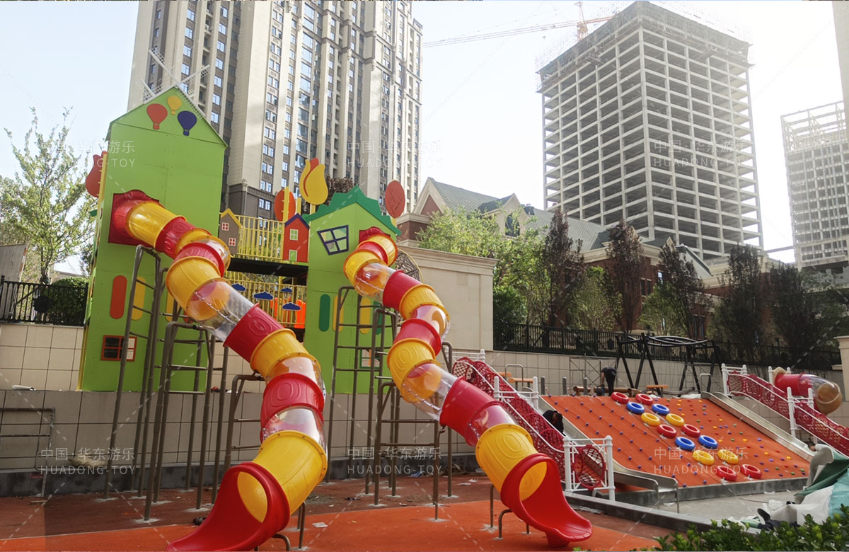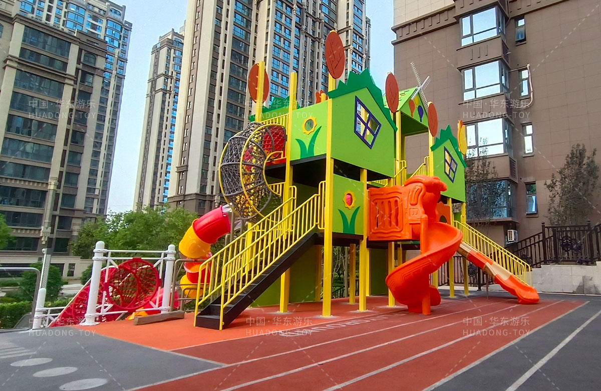 德福房地产骏景御园选用的是ky开元游乐自主研发和生产的趣味小屋为主题的游乐设备,整个场地分别设置了小朋友喜欢的组合滑梯、旋转座椅、不锈钢滑梯、组合秋千、各种类型的拓展游乐设备,不仅仅丰富了小区的生活,也为孩子们的健康成长提供了保障。