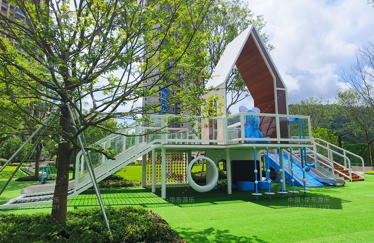 广东惠州润溪花园是一个高端的生活小区,为了更好的 服务生活中当地的居民,完善小区的配套设施,该小区选用的一个以小象的田野乐园为主题的游乐园,齐全的功能、艳丽的颜色深受孩子们的喜爱,同时为了更好的为孩子们提供一个休闲娱乐的场所,整个游乐场还设置了小朋友喜欢的儿童摇摇乐、组合秋千、翻翻乐、攀爬网等游乐器械。