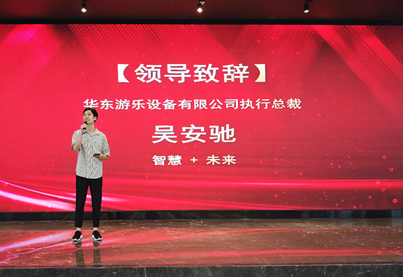 首先,在动员大会上,ky开元游乐的执行总裁吴安驰分享了关于游乐设备与AI技术相互结合带来的智慧与未来。他相信,游乐设备与新技术的结合将会开启一个全新的游乐时代。