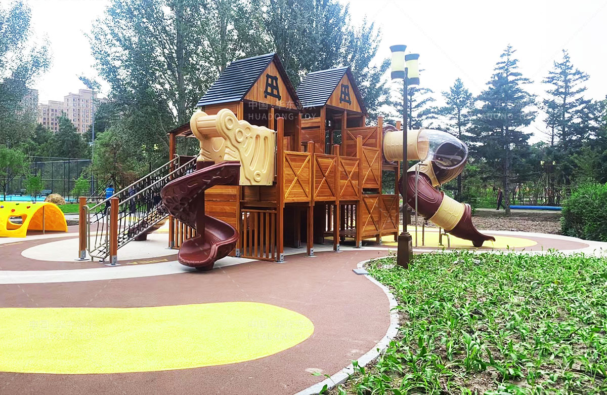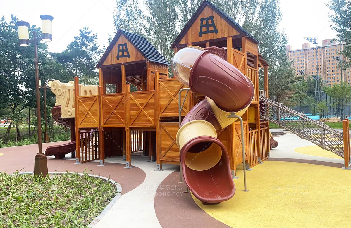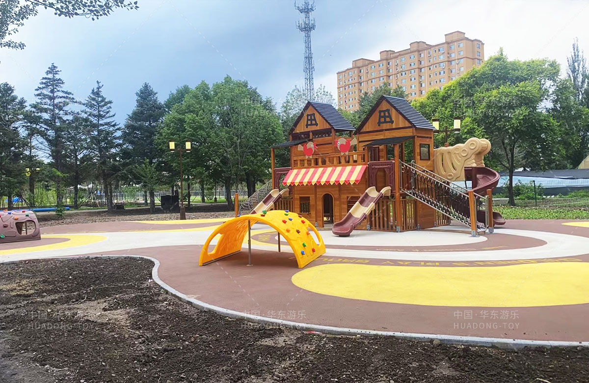 吉林省白城市洮北区兵器城小区是一个综合类型的居民小区,该小区设置了各种类型的 游乐设施,为了更好的为人民提供一个休闲娱乐的场所,此次选用的是ky开元游乐自主研发和设计的木质小屋系列的组合滑梯,除此之外还设置了孩子们喜欢的各种攀爬游乐设备。