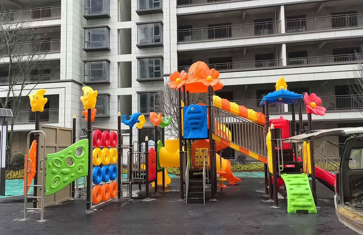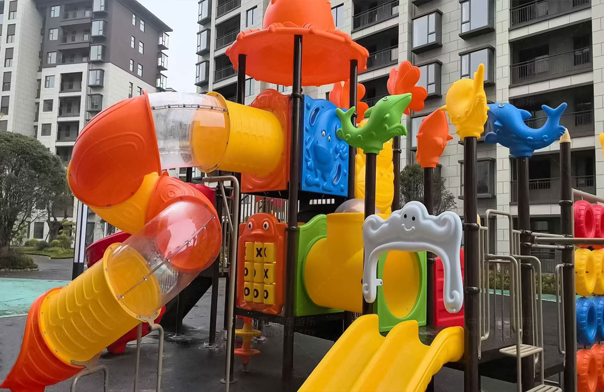 云南曲靖罗平县花海国际小区选用的是ky开元游乐自主研发和设计的动物系列组合滑梯,该滑梯具有功能齐全、玩法多样,深受孩子们的喜爱,除此之外还是一款颜色艳丽、使用寿命长等特点。